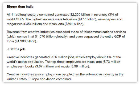 If you are an Industry Creative…What is creativity worth to the world economy? $2,250 billion is the answer, and 500+ Themes has a ready to plug in demo just for that as well, or you can build up a custom one if you prefer, all within just a few minutes of your time, and with no coding skills whatsoever.